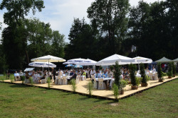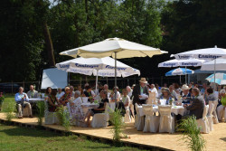 In diesem Jahr stand das traditionelle Schlösslesfest unter einem „arabischen“ Stern. Zu Ehren des 200-jährigen Jubiläums der Vollblut-Araberzucht des Haupt- und Landesgestüts Marbach, die am Schlössle Ihren Ursprung fand, wurden circa 200 Ehrengäste geladen. Die Marbacher selbst brachten fünf Stuten vor das Schlössle, zwei Hengste wurden beritten vorgestellt. Von König Wilhelm 1. mit seinem Bairactar bis hin zur heutigen Verbreitung der Weil-Marbacher-Zucht, von der Geschichte des Schlössles und dem Gestüt Scharnhausen und von der besonderen Beziehung zwischen Mensch und Pferd wurde von honorigen Rednern berichtet: